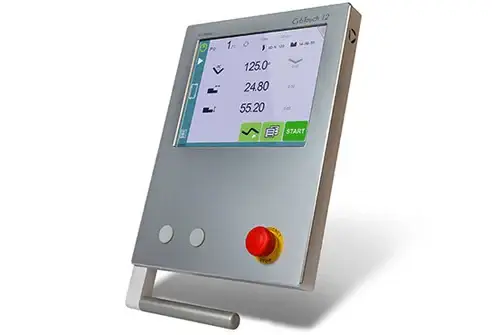 Programming of stroke, work speed (10% to 100%), return speed (10% to 100%) to make release of heavy or very wide plates smoother.