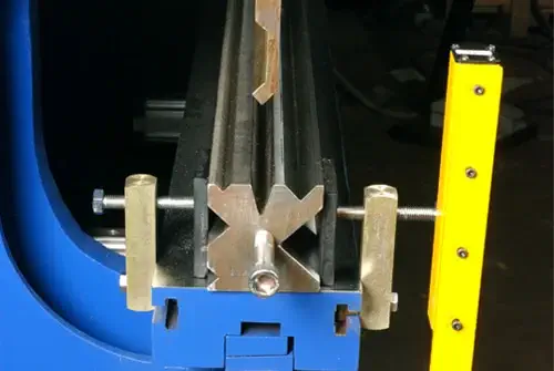 The high precision Imported Linear Scales are fitted on the Steel Frame attached to Machine Bed and it is independent of the side frame. This steel frame supports the sensors which takes positional readings directly from the Ram on the centre line of the Main Pressure Cylinder. The Scales are Self Aligned type fitted with Bearings which always give correct Position of the Upper Tool with respect to Lower Tool. These Scales are mounted on both sides of the CNC Synchro Hydraulic Press Brakes Machine in combination with the Y1 and Y2 axes control, thereby providing accurate synchronization between the Cylinders to 0.01 mm.